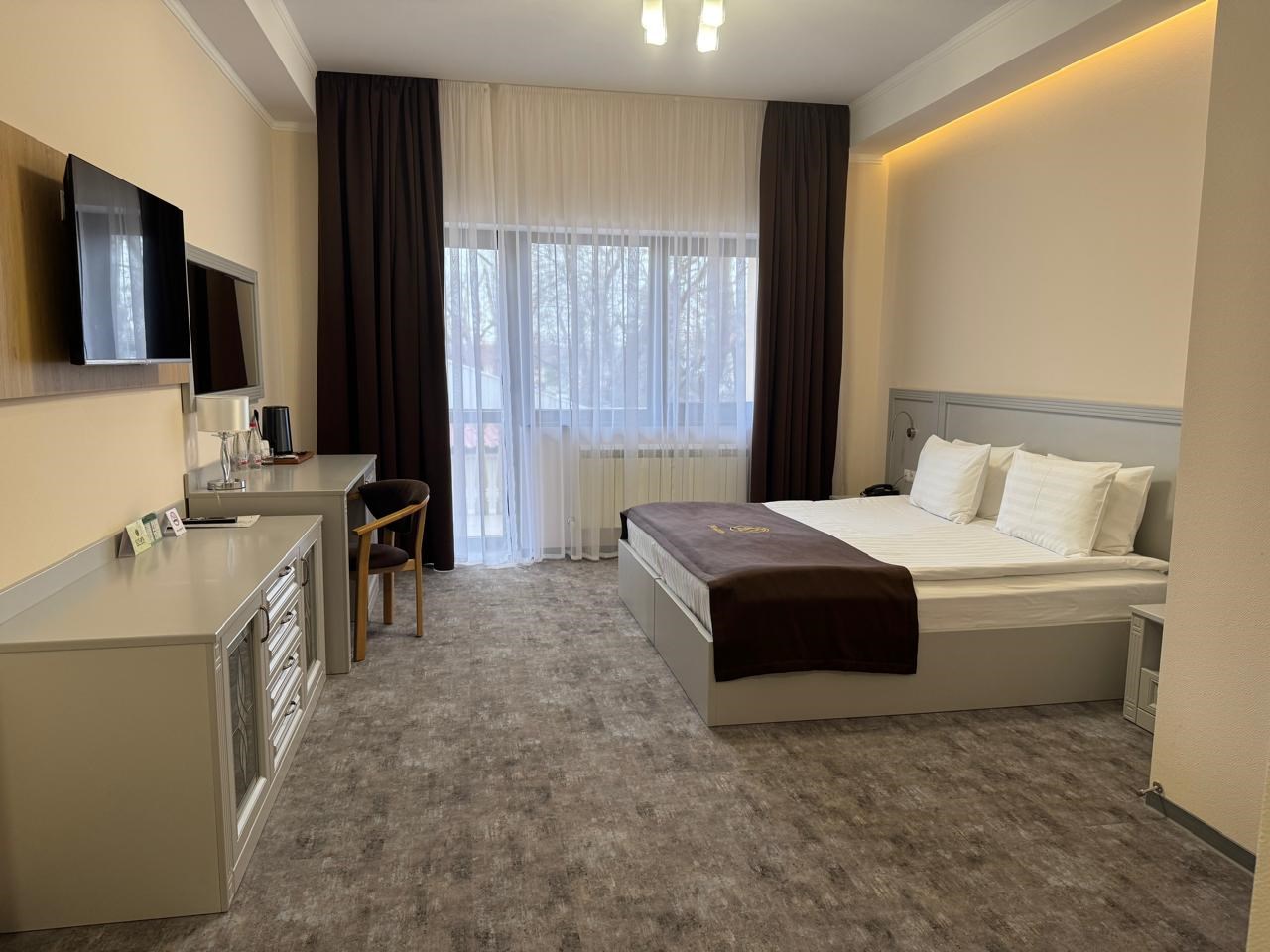 Современный отель состоит из двух корпусов, расположенных рядом на закрытой территории. Жилой фонд включает в себя более 40 номеров разных категорий, в том числе есть апартаменты с мини-кухней. В комнатах все предусмотрено для комфортного отдыха: есть санузел с душевой кабиной, кондиционер, телевизор, электрочайник, доступна сеть wi-fi.